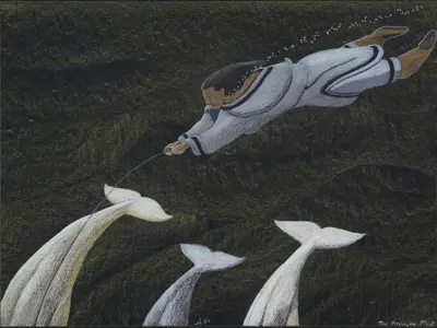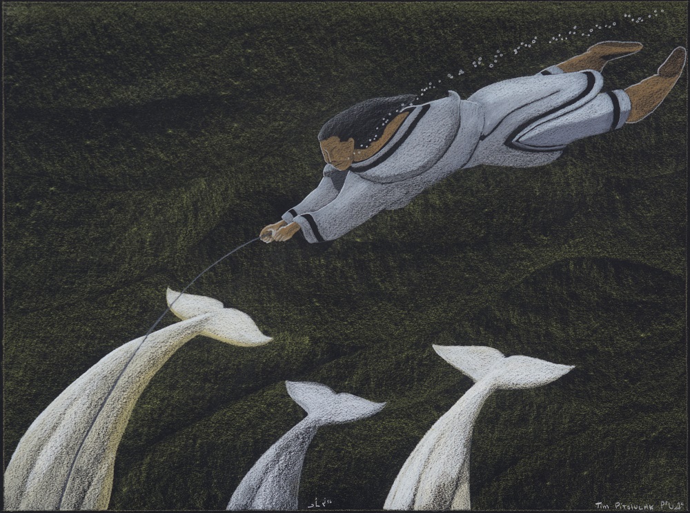 The exhibition draws from private collections as well as that of the Art Gallery of Guelph, providing a comprehensive view of Pitsiulak's distinctive artistic practice and imagination. The exhibition highlights the distinct way of seeing that underpins Pitsiulak's work – perception honed on the land as both a hunter and an artist. For Pitsiulak, these pursuits were intricately intertwined, both stemming from his practice of "long looking." In Inuktitut, tautuppaa means to see or to look for a long time. Integral to Pitsiulak's practice, ideas of perception, attention, and duration are reflected in the precise balance of detail and distance in his work.